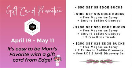 $200 Get $20 Edge Bucks + Free Magnesium Spray + Entry to Bedstu Giveaway + 2 Drink Tickets